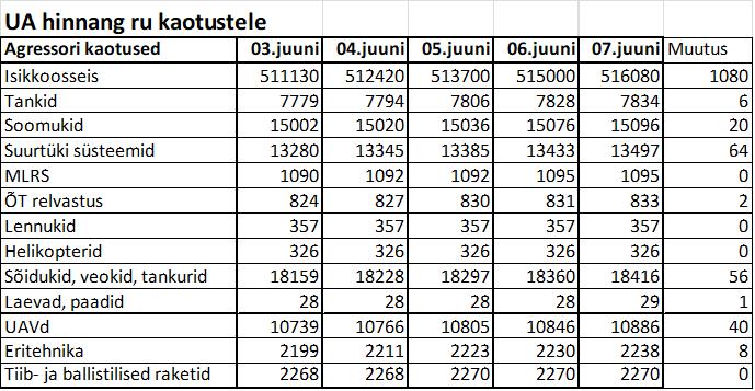Operatiiv- ja sõjaga seotud info 07. juunil