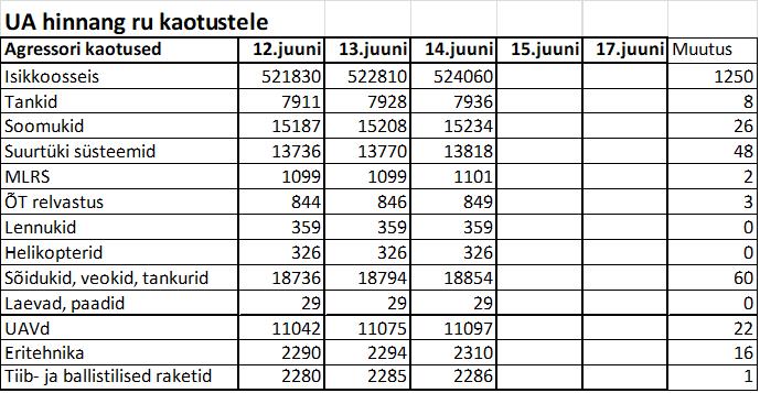 Operatiiv- ja sõjaga seotud info 14. juunil