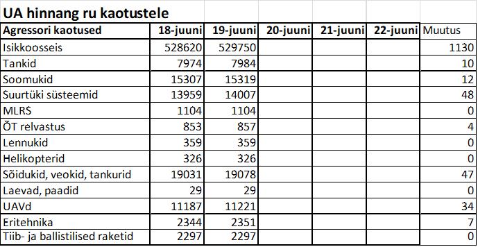 Operatiiv- ja sõjaga seotud info 19. juunil