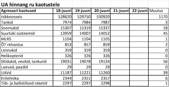 Operatiiv- ja sõjaga seotud info 20. juunil