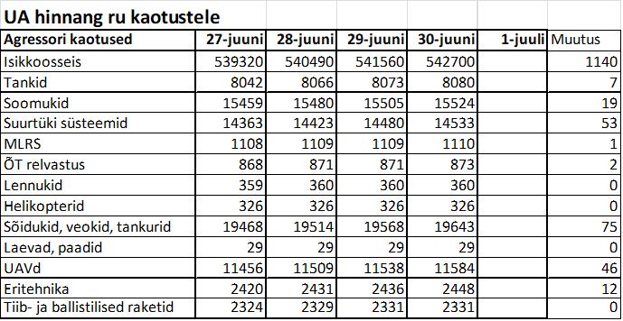 Operatiiv- ja sõjaga seotud info 30. juunil