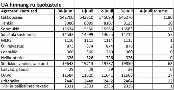 Operatiiv- ja sõjaga seotud info 03. juulil