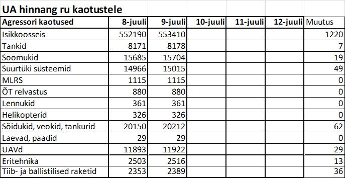 Operatiiv- ja sõjaga seotud info 09. juulil