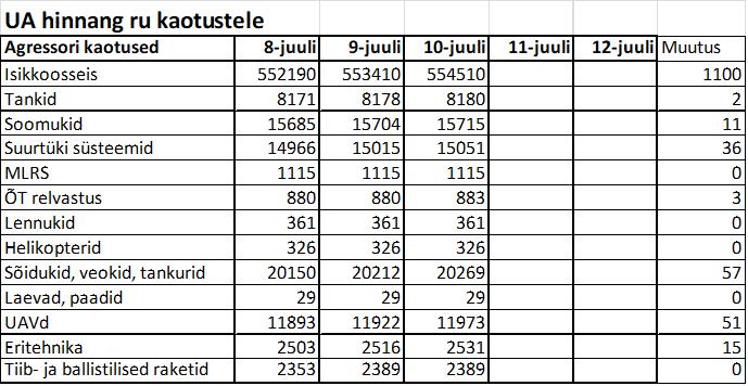 Operatiiv- ja sõjaga seotud info 10. juulil