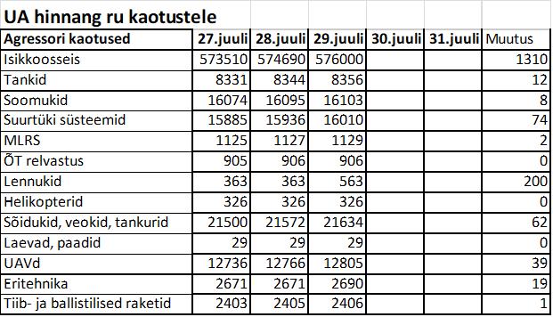 Operatiiv- ja sõjaga seotud info 29. juulil