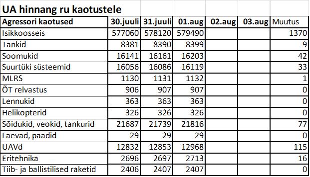 Operatiiv- ja sõjaga seotud info 01. augustil