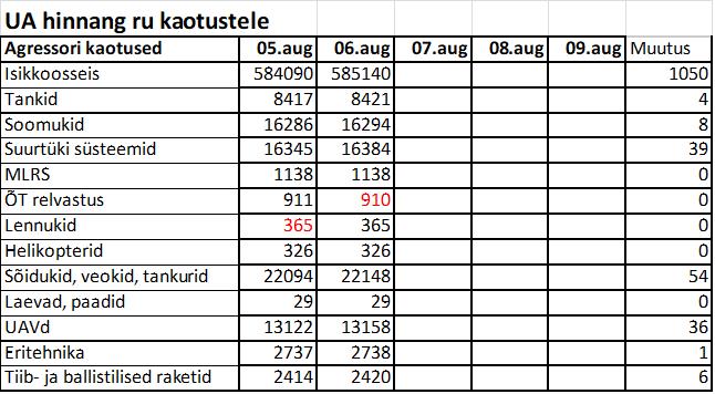 Operatiiv- ja sõjaga seotud info 06. augustil