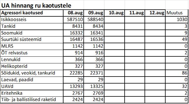 Operatiiv- ja sõjaga seotud info 09. augustil