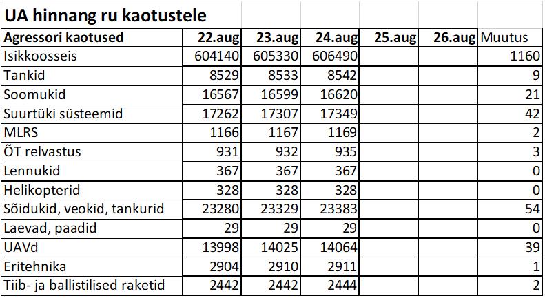 Operatiiv- ja sõjaga seotud info 24. augustil
