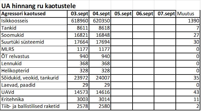 Operatiiv- ja sõjaga seotud info 04. septembril