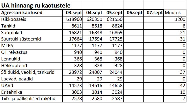 Operatiiv- ja sõjaga seotud info 05. septembril