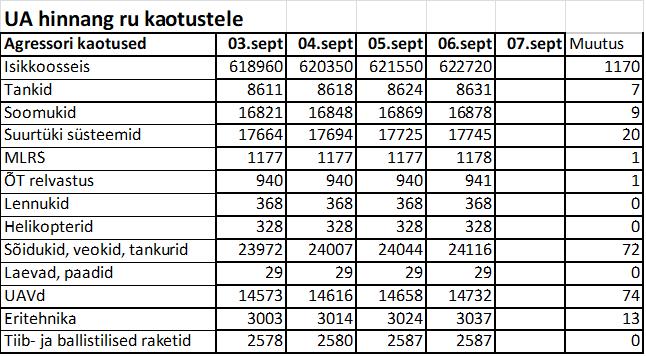 Operatiiv- ja sõjaga seotud info 06. septembril