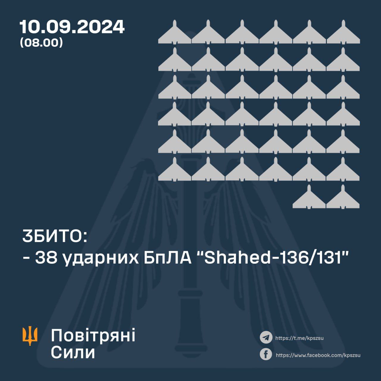 - Vene Föderatsiooni kaitseministeerium teatas, et 10. septembri öösel tulistati väidetavalt Venemaa territooriumi kohal 9 piirkonnas alla 144 Ukraina drooni, millest 20 olid Moskva oblastis;