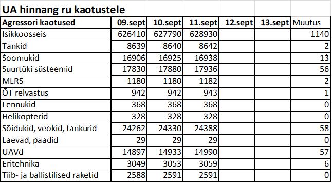 Operatiiv- ja sõjaga seotud info 11. septembril
