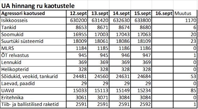 Operatiiv- ja sõjaga seotud info 15. septembril
