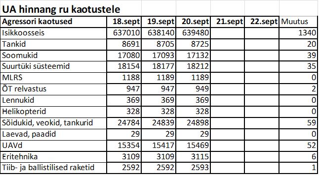 Operatiiv- ja sõjaga seotud info 20. septembril