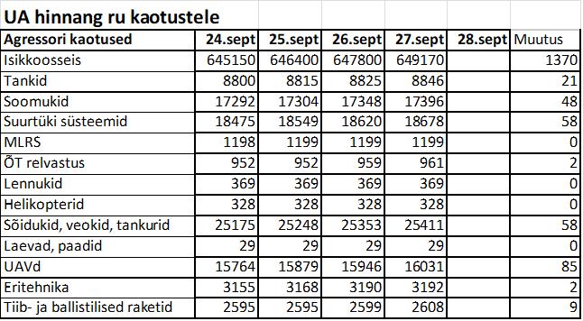 Operatiiv- ja sõjaga seotud info 27. septembril