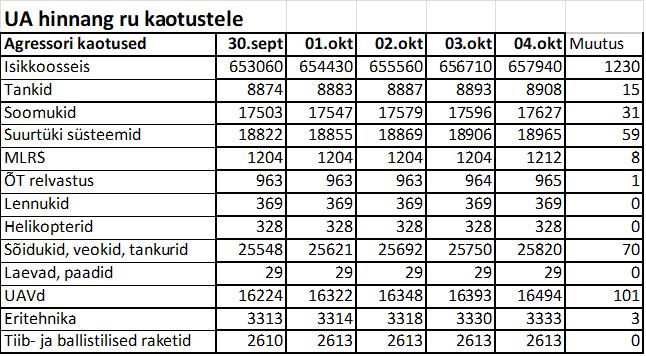 Operatiiv- ja sõjaga seotud info 04. oktoobril