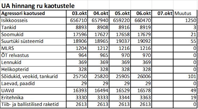 Operatiiv- ja sõjaga seotud info 06. oktoobril