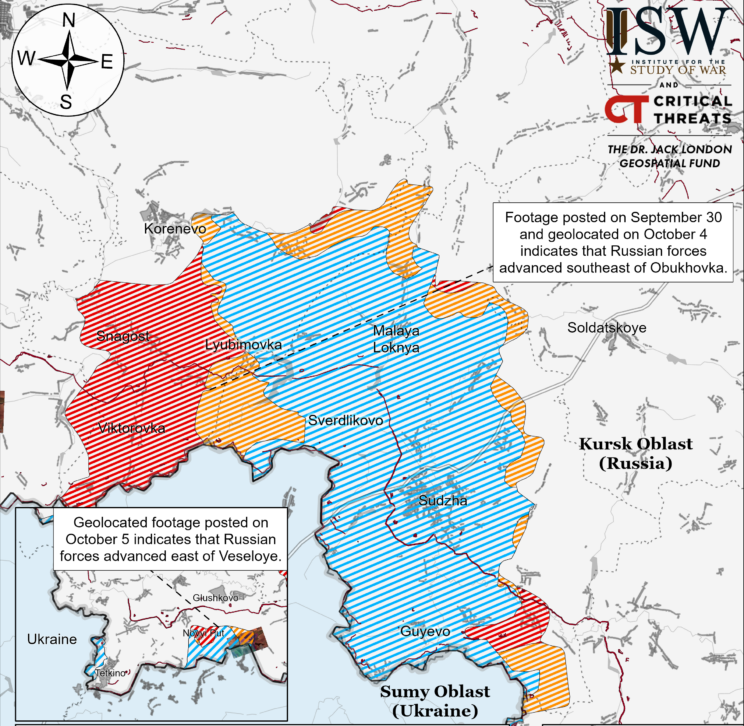 Ukraina väed jätkasid Kurski oblastis rünnakuid Gluškovski rajoonis kuid edutult. Väidetavalt vallutasid Vene väed tagasi Medvežje (Gluškovost kagus). Ukraina väed ründasid Gluškovost edelas Veseloje ja Novy Puti lähedal. Geolokatsiooniga klipid näitavad, et Vene väed liikusid hiljuti Obuhhovkast (Korenevost kagus) rühmasuuruse mehhaniseeritud rünnaku käigus edasi.