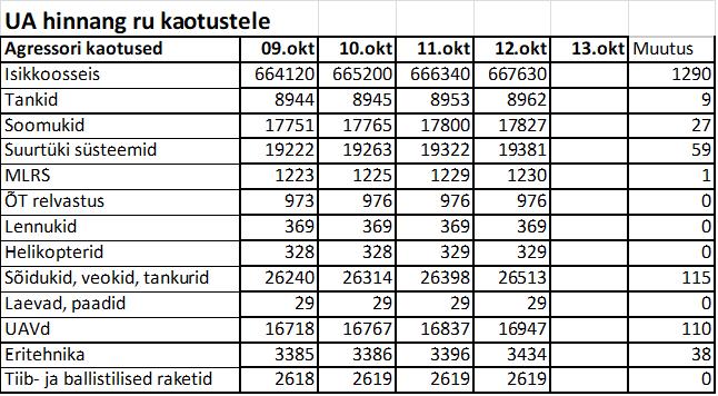 Operatiiv- ja sõjaga seotud info 12. oktoobril