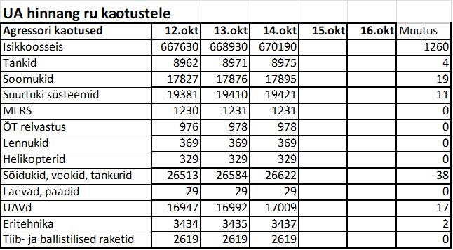 Operatiiv- ja sõjaga seotud info 14. oktoobril