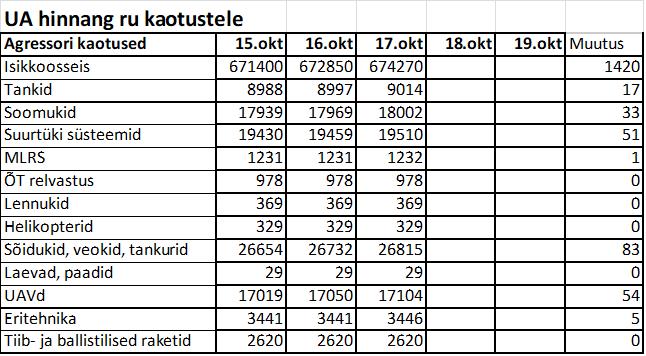 Operatiiv- ja sõjaga seotud info 17. oktoobril