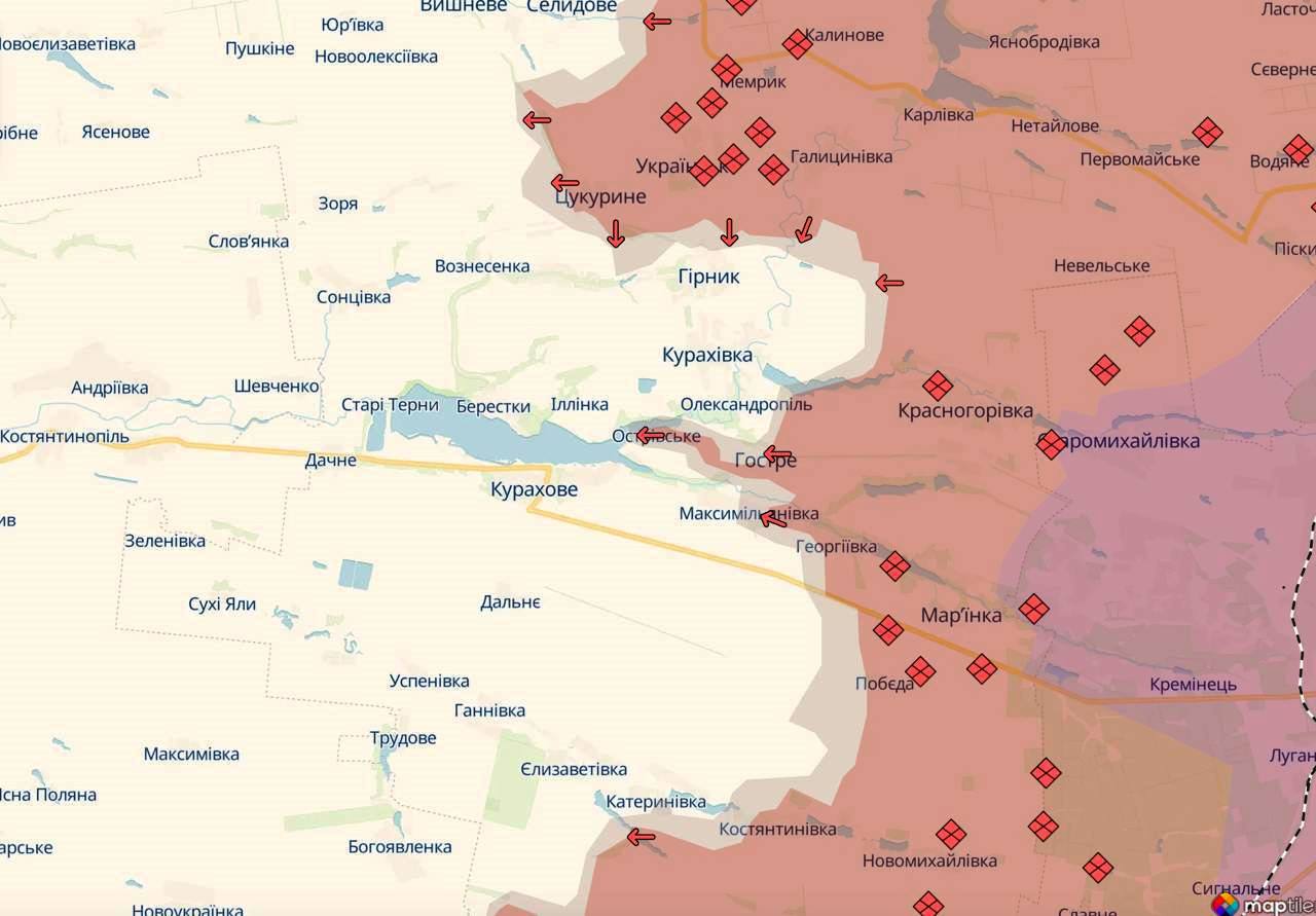 Kurakhivi suunal on praegu arvestatud 46 okupantide rünnakut. Zagarbniki tegevus on suurim Tsukurinyogo, Novoselidivka, Girnika, Georgíivka ja Vodânogo lähedal. Kaitseväe poolt on tõrjutud 26 vaenlase pealetungi, hetkel pole lahingutegevus vaibunud.