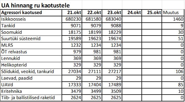 Operatiiv- ja sõjaga seotud info 23. oktoobril