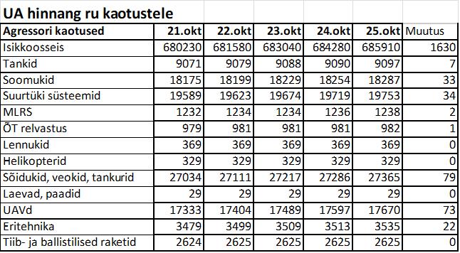 Operatiiv- ja sõjaga seotud info 25. oktoobril