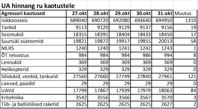 Operatiiv- ja sõjaga seotud info 31. oktoobril