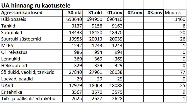 Operatiiv- ja sõjaga seotud info 01. novembril