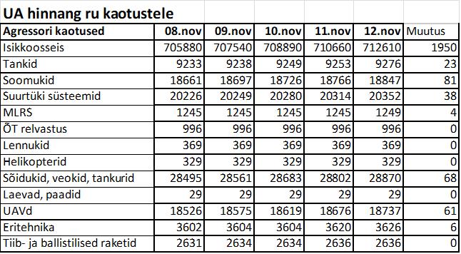 Operatiiv- ja sõjaga seotud info 12. novembril