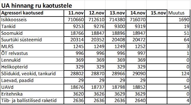 Operatiiv- ja sõjaga seotud info 14. novembril
