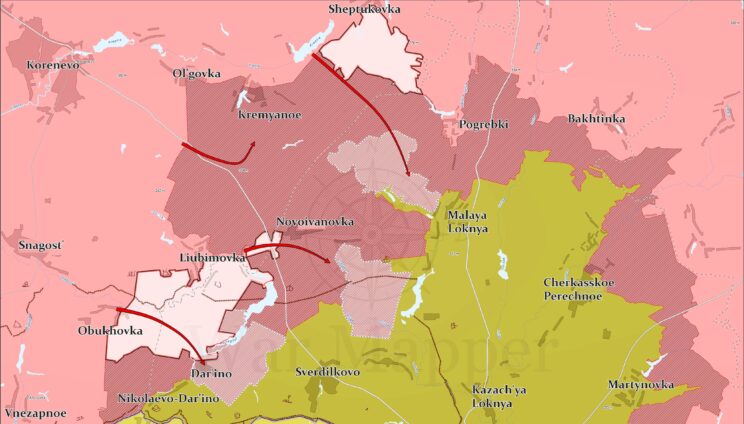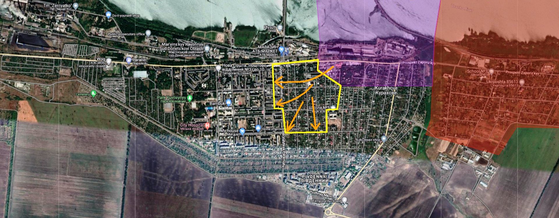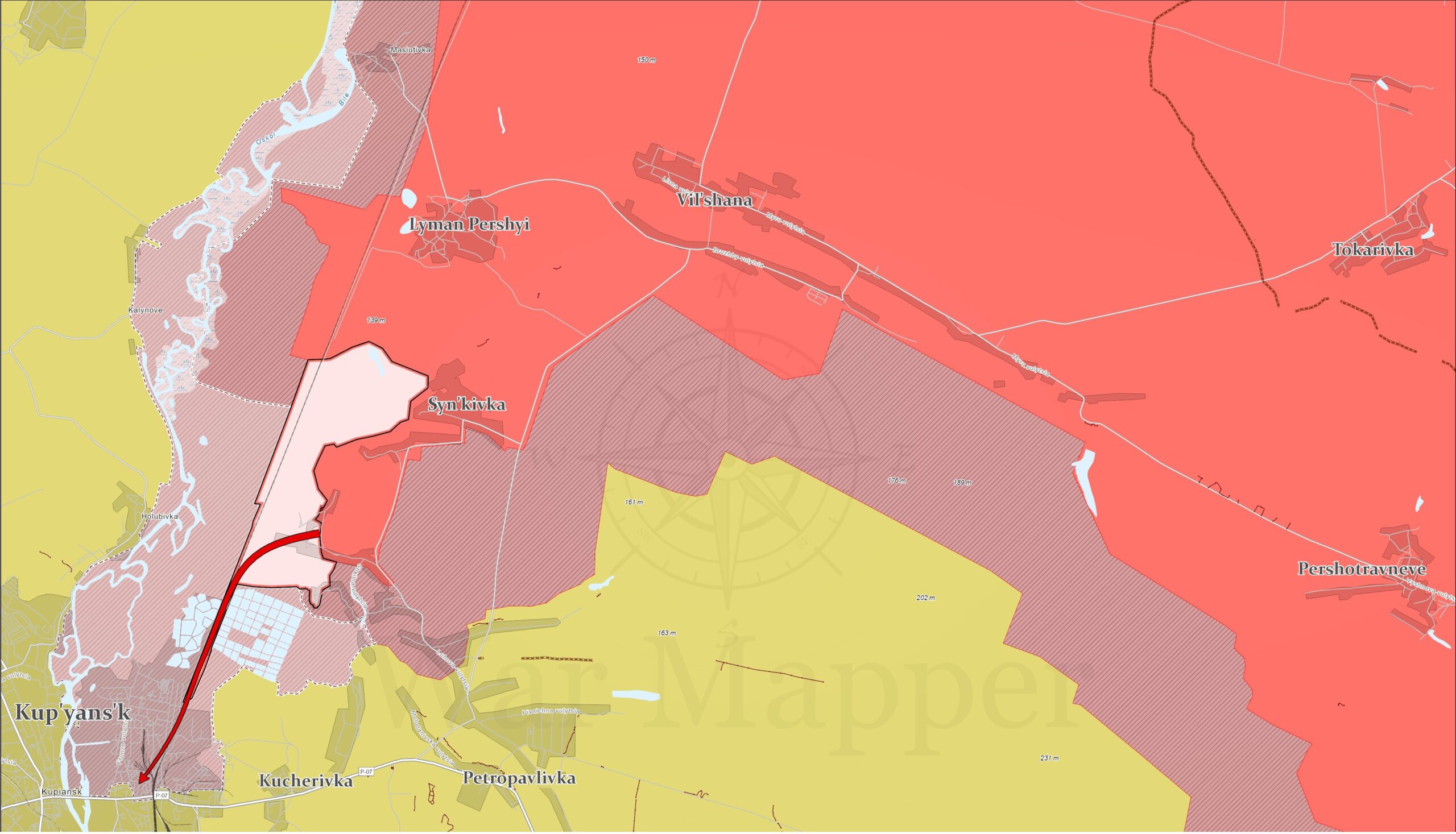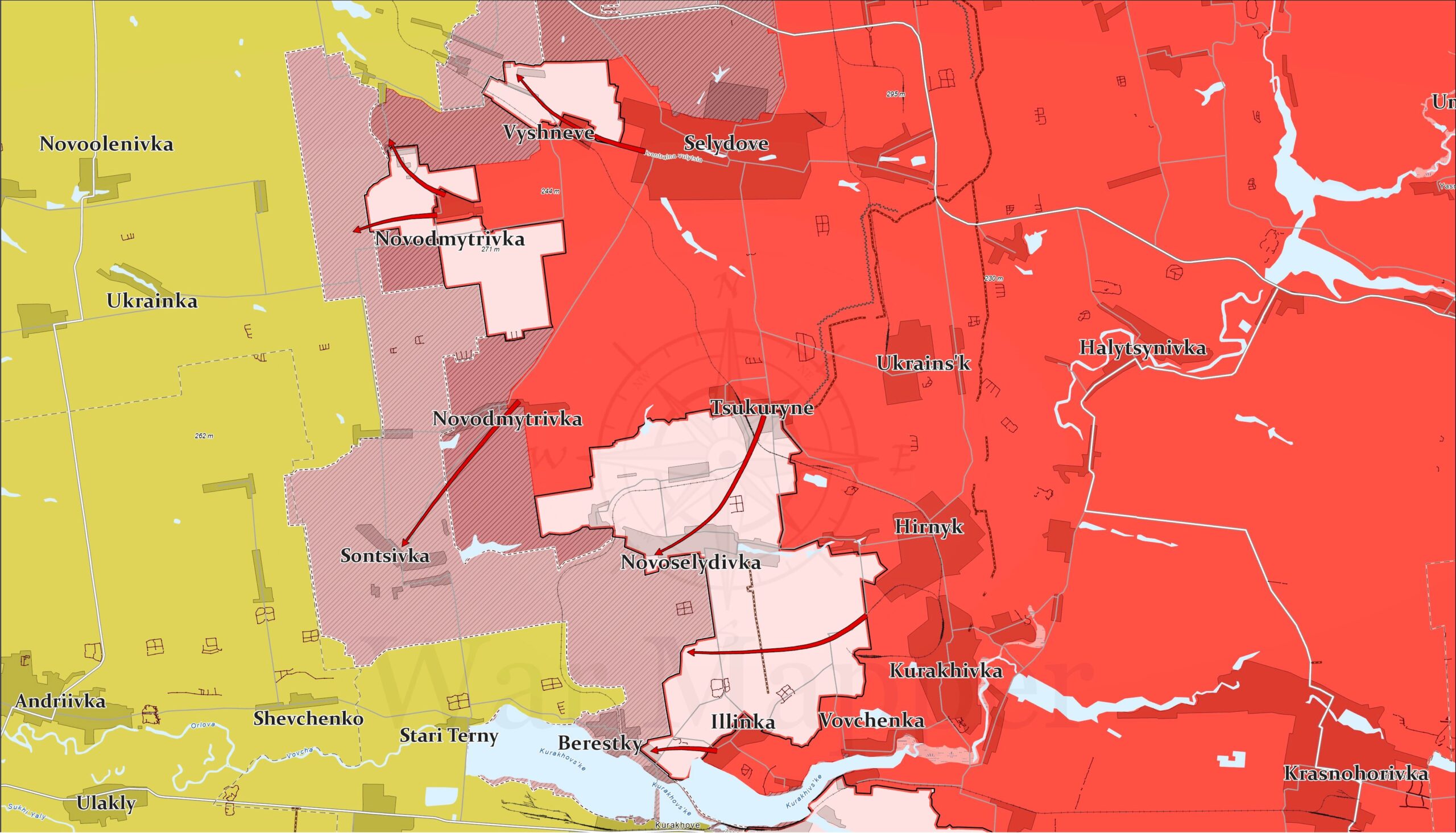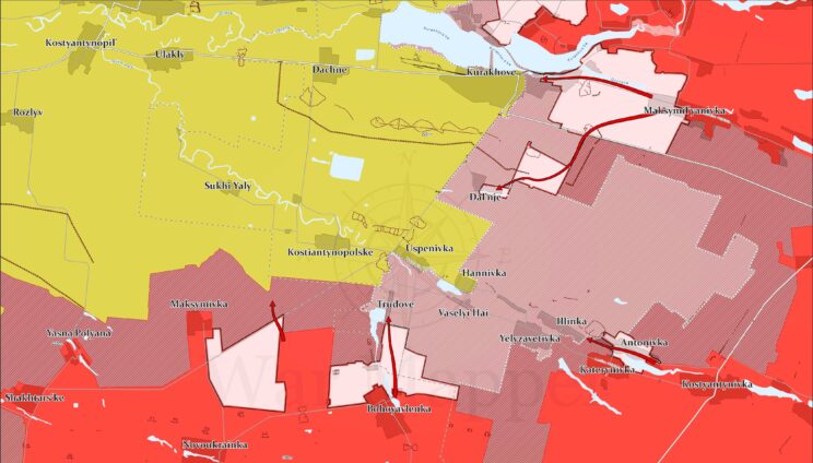 • “Deepstate” ütleb, et Vene väed on tunginud Yasna Poljanast kirdesse, võttes sisse uued positsioonid. Seejärel asusid nad väidetavalt idast läände kulgeval puujoonel edasisi positsioone. Samuti teatati, et Vene väed lõid Maksymivkast põhja pool väikese puhvertsooni.