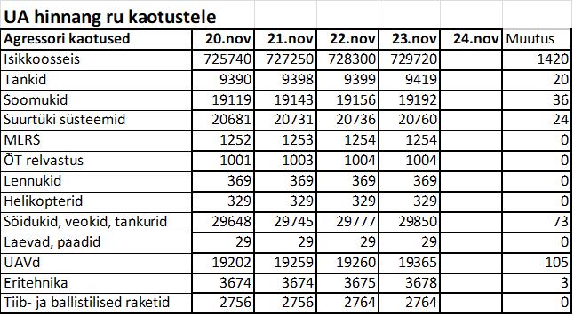 Operatiiv- ja sõjaga seotud info 23. novembril