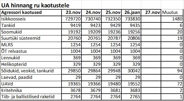 Operatiiv- ja sõjaga seotud info 26. novembril