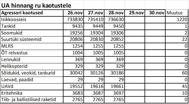 Operatiiv- ja sõjaga seotud info 28. novembril