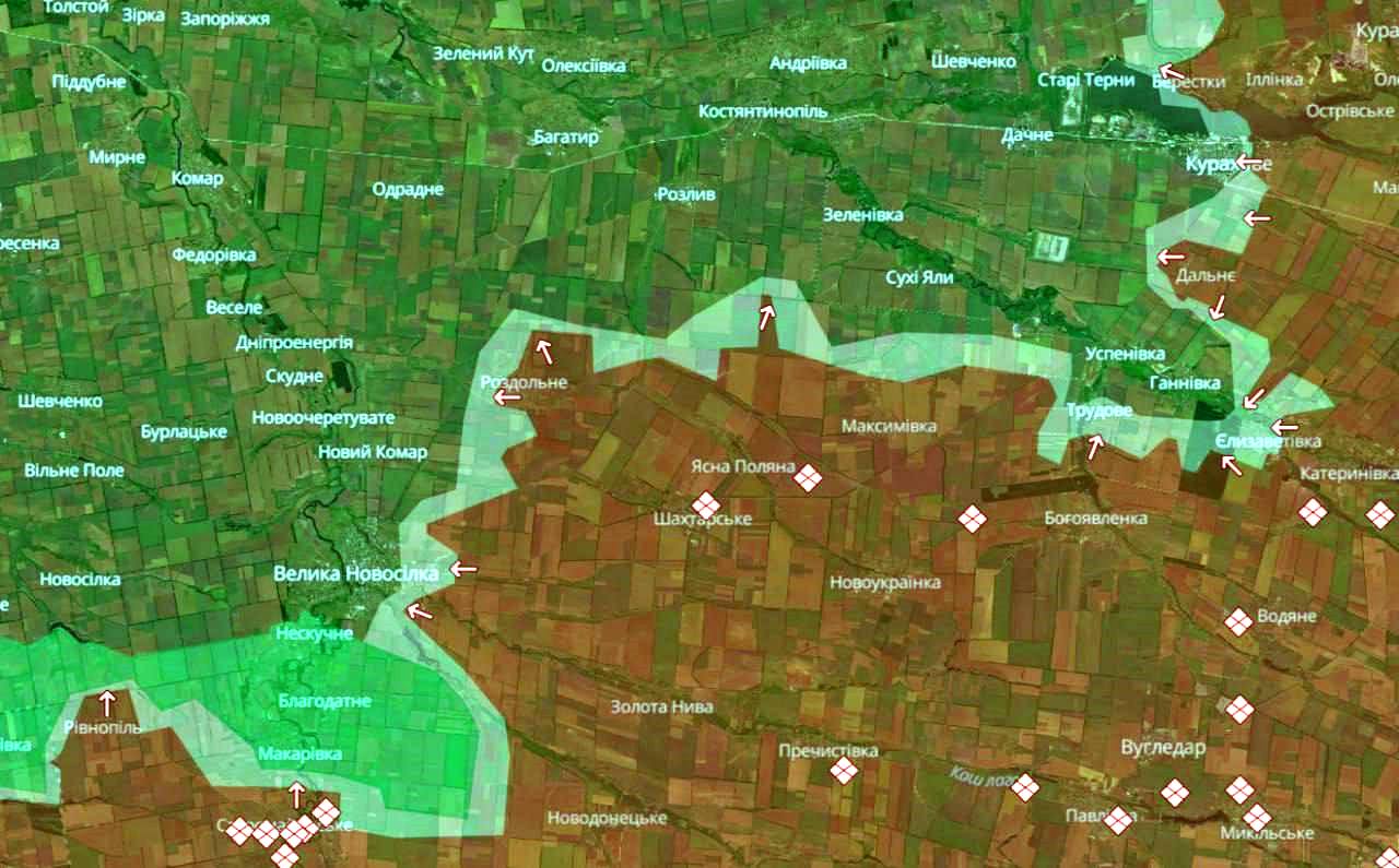 - Deep State: Vaenlane okupeeris Novoselidivka ja Petrivka ning tungis edasi ka Novomlynski, Žovto, Pustinka, Puškino, Rozdolnõi, Rozlõvi, Vesely Gay, Rivnopoli, Sontsivka, Krugliakivka, Berestki ja Kurakhovo lähedal.