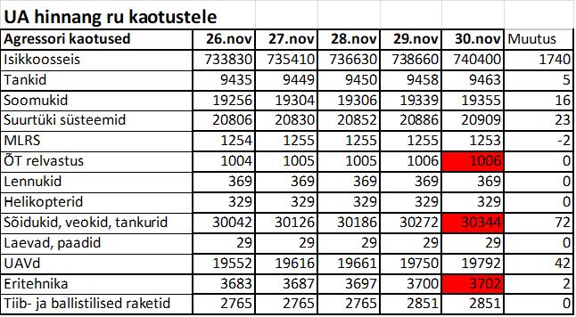 Operatiiv- ja sõjaga seotud info 30. novembril