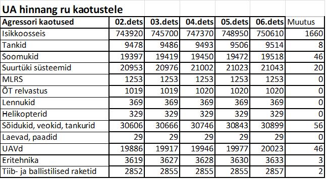 Operatiiv- ja sõjaga seotud info 06. detsembril