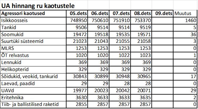 Operatiiv- ja sõjaga seotud info 08. detsembril