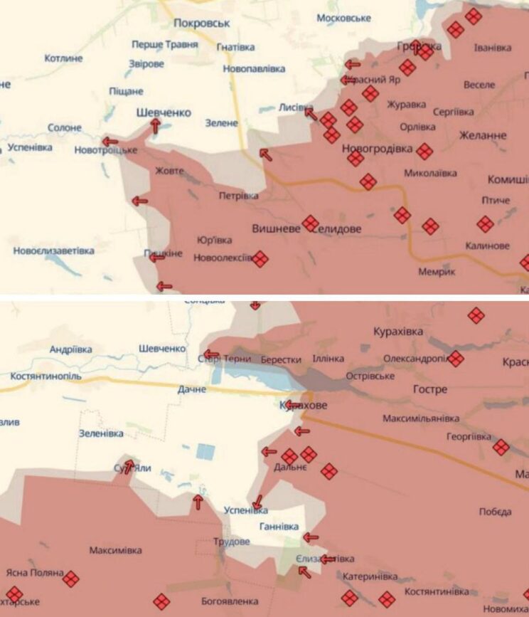 - Okupandid trügivad Pokrovski suunas ja suruvad “tasku” Kurakhove suunas. Pokrovski suunas on ebareaalne arv rünnakuid. Seal on vaenlasel piisavalt jõudu, et meie üksused lihtsalt arvuliselt kurnata. “Taskus” pressivad nad kolmest küljest: töötab , REB-id ja droonid. Peamised lahingud käivad läbipääsu pärast Uspenivkas.