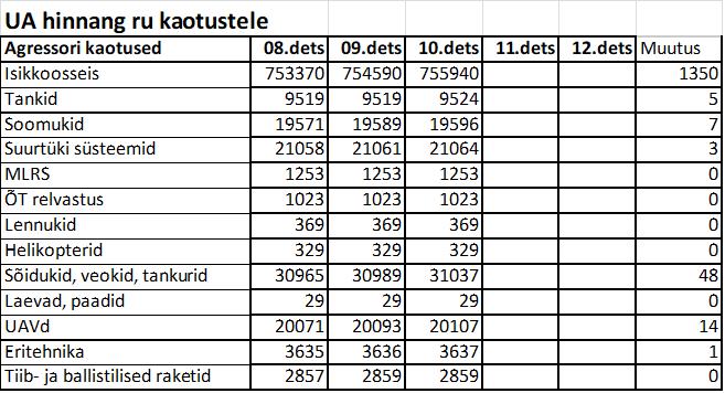 Operatiiv- ja sõjaga seotud info 10. detsembril