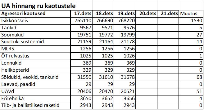 Operatiiv- ja sõjaga seotud info 19. detsembril