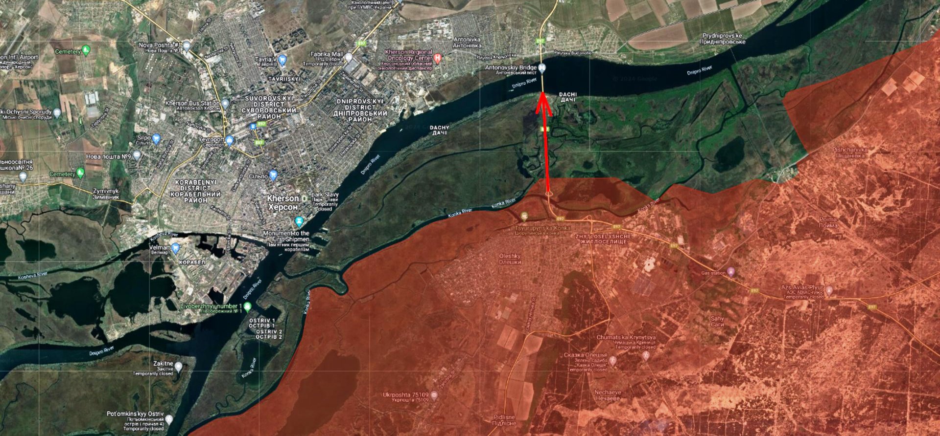 • Väidetavalt on Vene väed alustanud rünnakuid Ukraina kontrolli all olevale territooriumile Hersoni lähedal Antonovski silla juures. Khersoni ja teiste rannikuäärsete asulate kohta on teatatud ulatuslikust suurtükiväe ja MLRS-i tulistusest. Ilmselt üritavad Vene ründerühmad Oleškist silla poole edasi liikuda, luurejõud aga tegutsevad Konka ja Dnipro jõe vahelistel saartel.