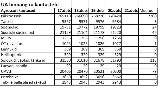Operatiiv- ja sõjaga seotud info 20. detsembril