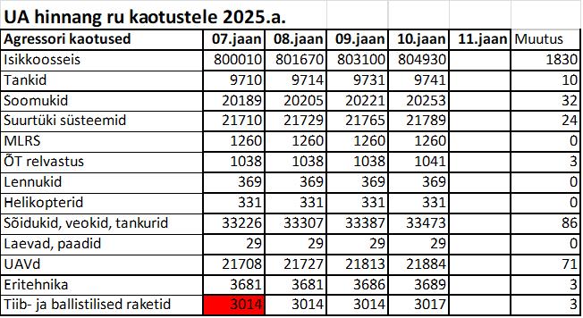 Operatiiv- ja sõjaga seotud info 10. jaanuaril