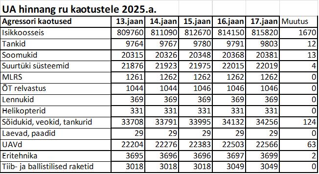 Operatiiv- ja sõjaga seotud info 17. jaanuaril