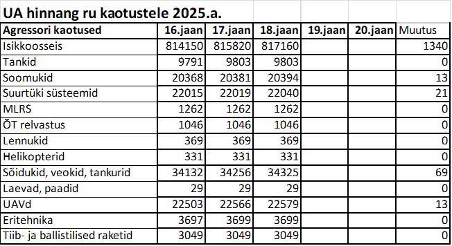 Operatiiv- ja sõjaga seotud info 18. jaanuaril